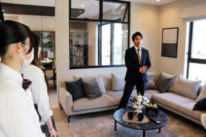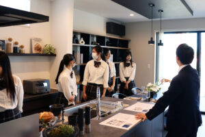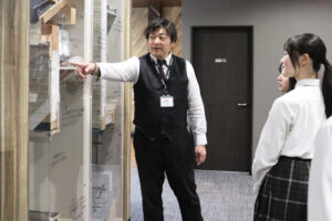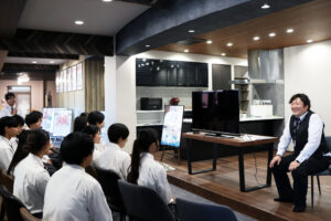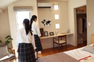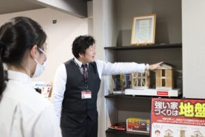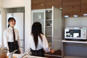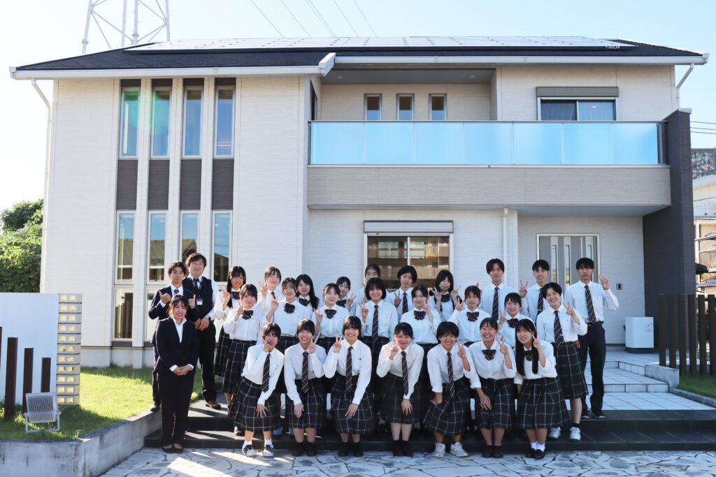 10月9日(木)、四日市市にある住宅メーカー【タマホーム四日市】様を訪問し、見学をさせていただきました。3つのモデルハウスを見学しながら、理想の家づくりにおけるポイント(外観デザイン、間取りのトレンド、収納計画、空間設計など)について学びました。外観だけでなく、構造や住宅性能、耐震・断熱に関する工夫など、高校生にとっては少しイメージしづらい内容についても、分かりやすく丁寧にご説明いただきました。生徒たちは、将来自分がどのような家に住みたいかという思いを膨らませながら、楽しそうに学習に取り組んでいました。