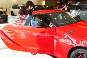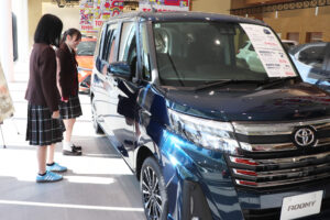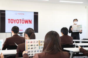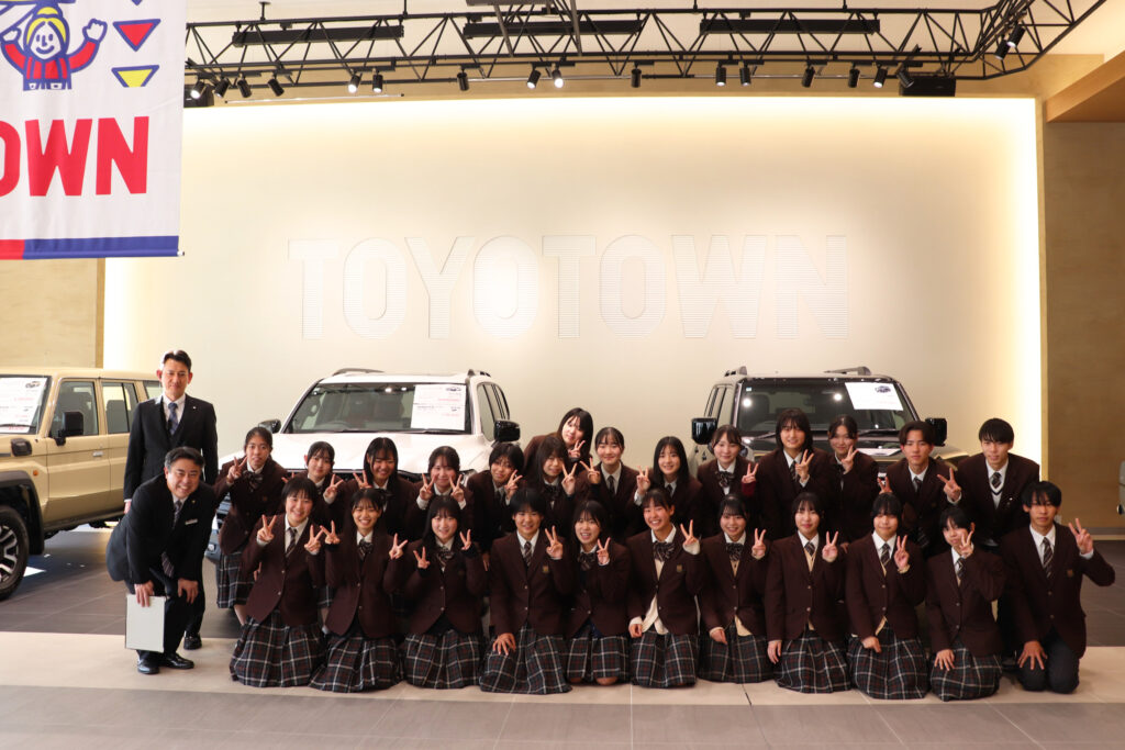 11月7日(木)、四日市市にある自動車販売店【トヨタウン四日市店】さんへ見学に伺いました。約20台の展示車を見せていただき、それぞれの車の特徴や、車を選ぶ際のポイントについて分かりやすく説明していただきました。実際に運転席に座り、ハンドルを握ったときの目線の高さやシートの座り心地など、車ごとの感覚的な違いを体験することもできました。