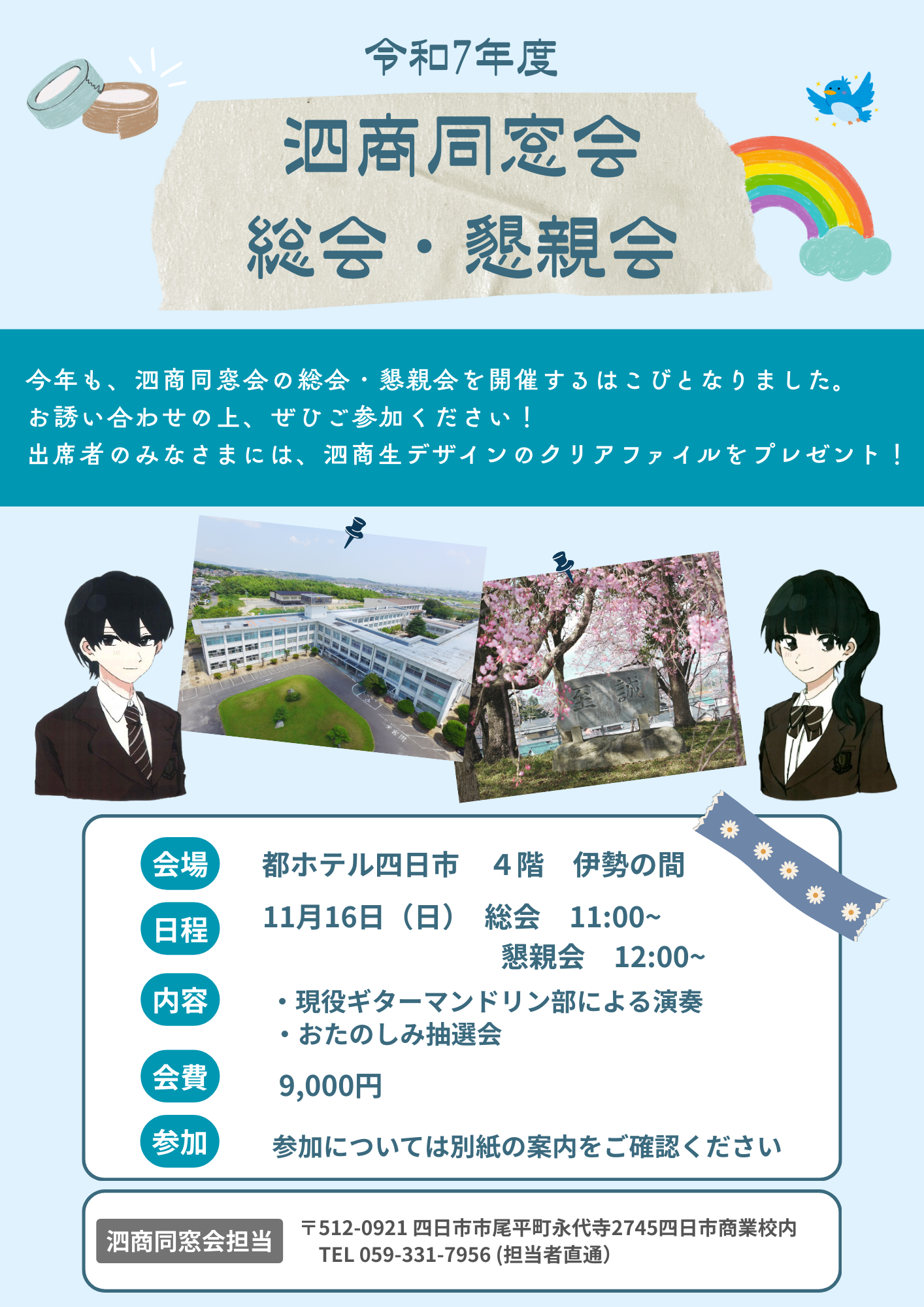 令和7年度 泗商同窓会 総会および懇親会 のご案内